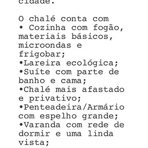 Nesta pousada você estará a 1.3 km do Centro Histórico de Carrancas. O centro de Carrancas está a 2 km de distância de chalé. Restaurante Carrancudo proximo está localizado a 13 minutos a pé. Você pode alcançar o Poço do Coração a alguns minutos de carro. O aeroporto de Varginha pode ser alcançado dentro de km 130.